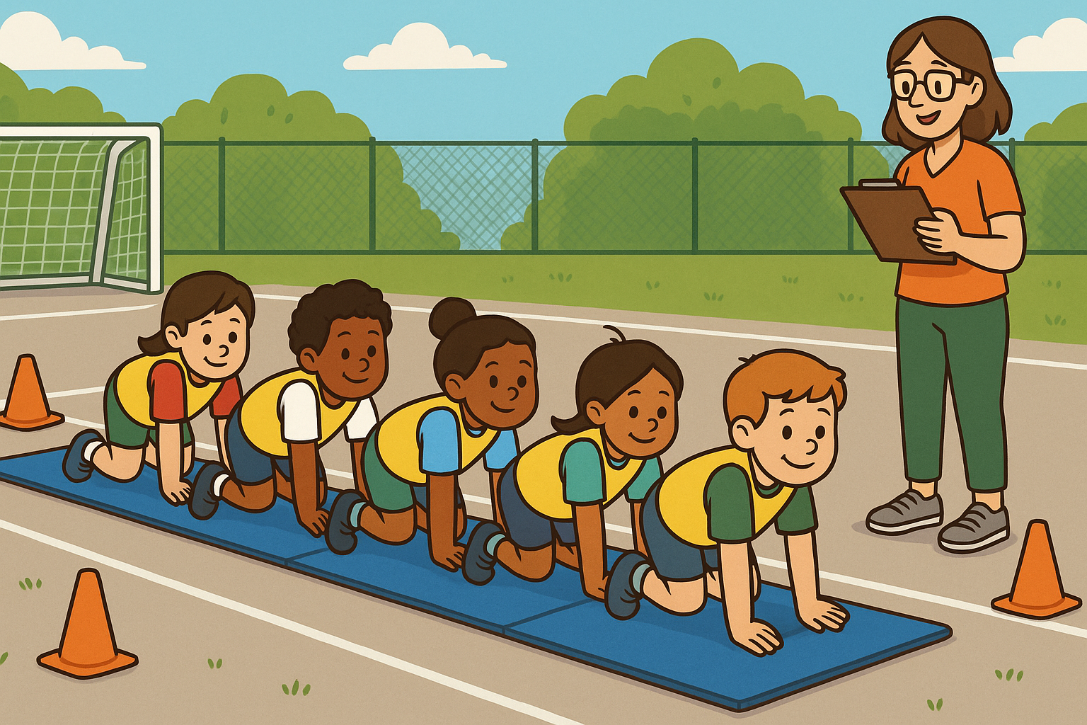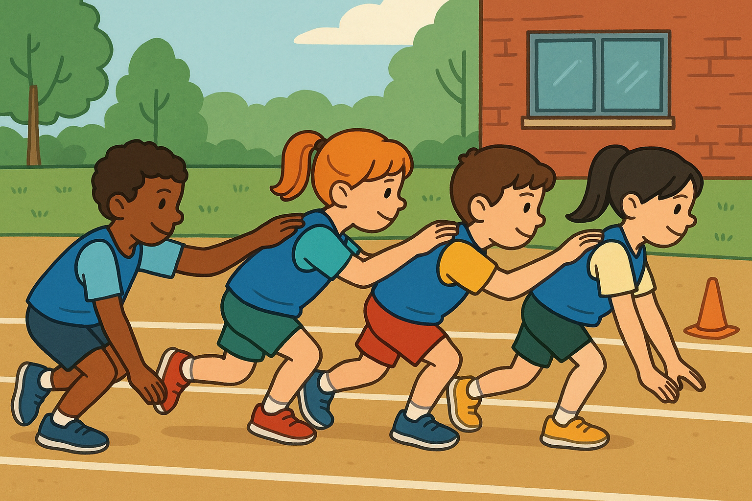 - Filas/carriles muy definidos y separados; en juegos de cadena, priorizar tramos cortos y controlados para proteger a quienes ocupan el último puesto (mayor velocidad y riesgo).